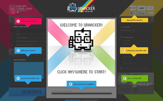 QR Hacker 是一个 Web 服务,为文本、URL、电话号码和 VCard 创建彩色的二维条形码。